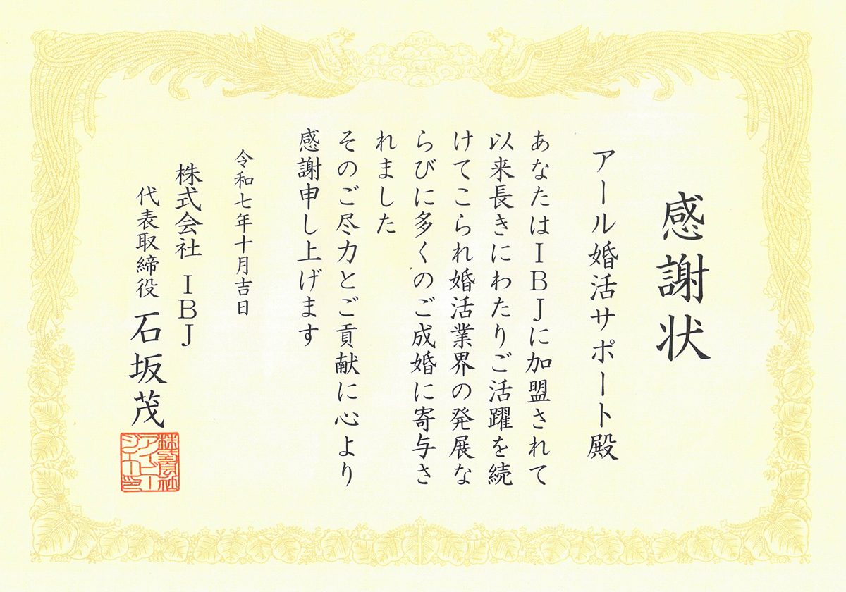 昨今、何千社とある結婚情報センター・結婚相談所・仲人業・お見合い所等が存在します。その中から結婚と言う一生の問題を考える時に、R婚活サポート(神戸の三宮に所在)をお選び頂いた理由は、当会のモットーである「安心・信頼・誠実」が評価されたからだと思います。